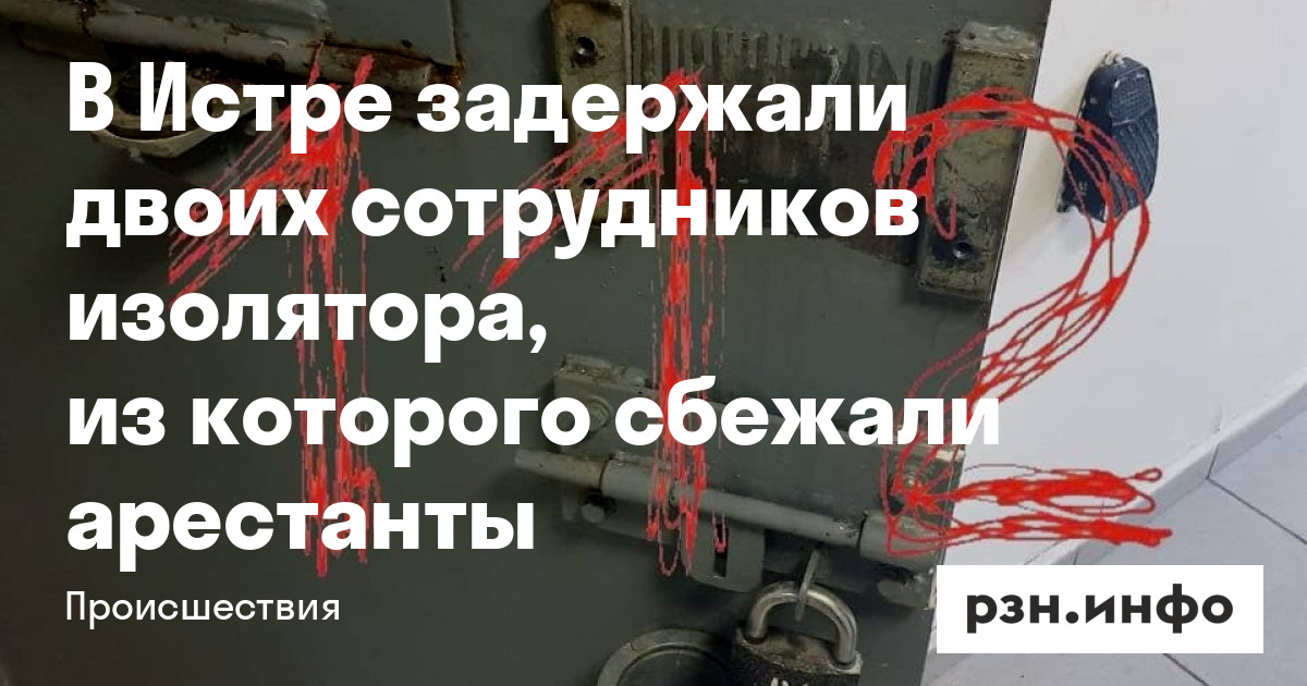 В подмосковной Истре задержали двоих сотрудников изолятора временного содержания, из которого сбежали арестанты. Об этом в пятницу, 6 августа, «Интерфаксу” сообщила представитель областного главка следственного комитета Ольга Врадий.