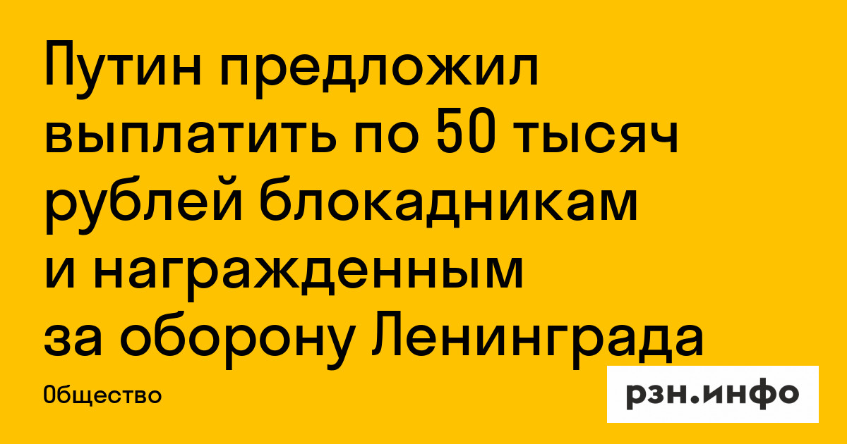 «В связи с 80-летней годовщиной открытия „Дороги жизни“ предлагаю провести единовременную выплату гражданам РФ, награжденным медалью за оборону Ленинграда или знаком жителя блокадного Ленинграда», — заявил глава государства.