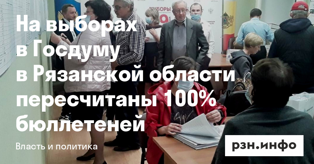 На выборах в Госдуму в Рязанской области пересчитаны 100% бюллетеней