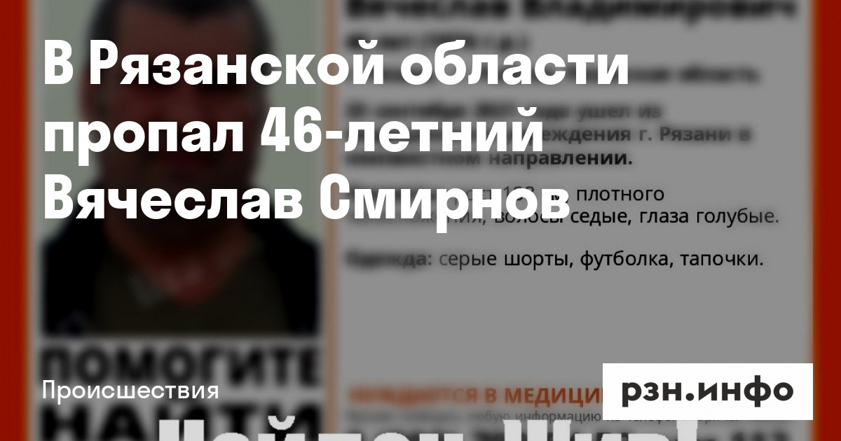 В Рязанской области пропал 46-летний Вячеслав Смирнов