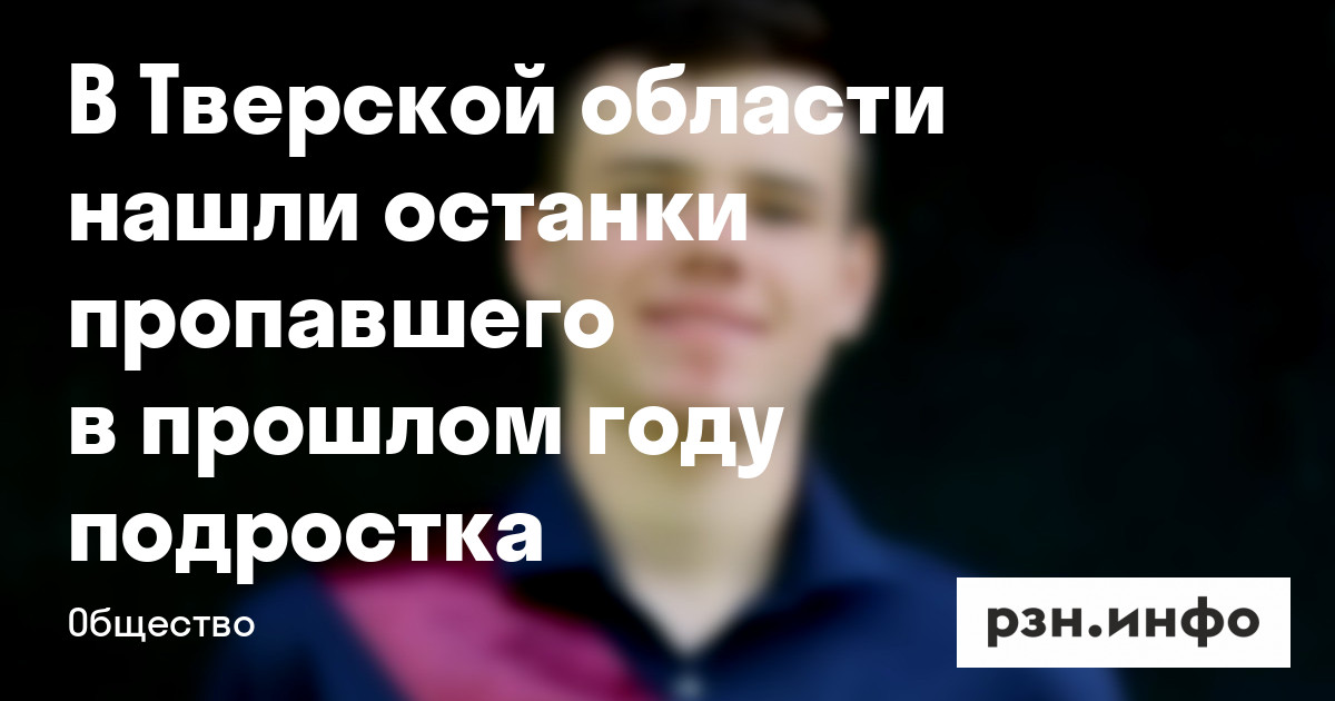 В Тверской области нашли скелетированные останки 16-летнего Егора Васильева. Парень пропал десять месяцев назад. Об этом в среду, 29 сентября, сообщил портал .