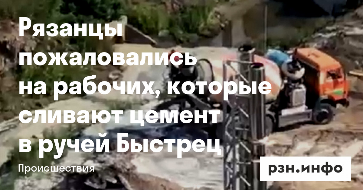 Рязанец снял на видео, как рабочие сливают цемент в ручей Быстрец. Кадры он опубликовал в социальных сетях.