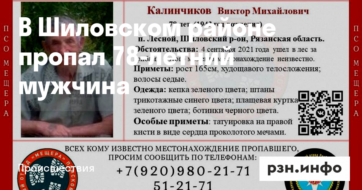 В Шиловском районе 78-летний пенсионер 4 сентября ушел в лес за грибами. С этого момента его местонахождение неизвестно, сообщили волонтеры поисково-спасательного отряда «Мещера».
