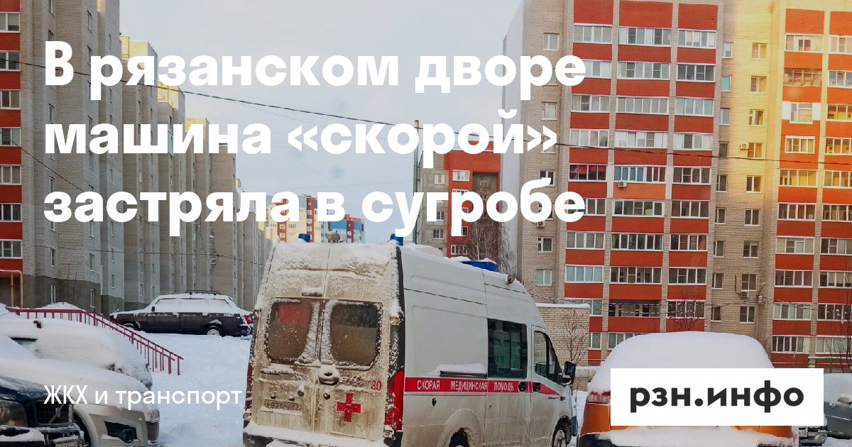 В рязанском дворе машина «скорой» застряла в сугробе. Об этом рассказали очевидцы в группе «Подслушано у водителей Рязани» в соцсети «ВКонтакте».
