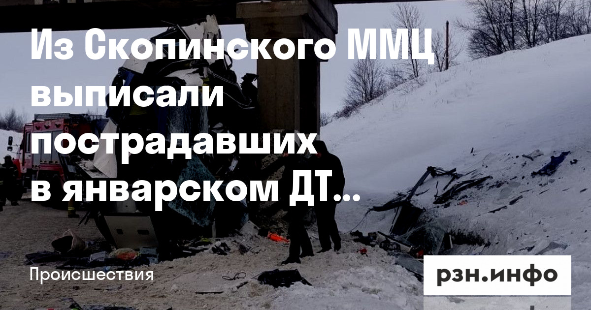 В четверг, 12 января, из Скопинского ММЦ выписали последних пациентов, поступивших после ДТП с рейсовым автобусом «Москва — Астрахань». Об этом сообщила пресс-служба регионального минздрава.