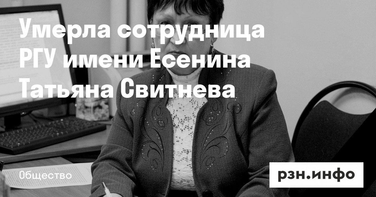 Умерла сотрудница РГУ имени Есенина Татьяна Свитнева. Некролог опубликовали «Рязанские ведомости» в пятницу, 14 января.