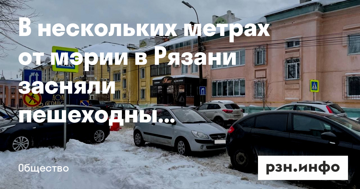 В нескольких метрах от мэрии в Рязани засняли пешеходный переход, загороженный машинами