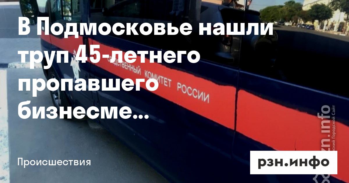 В Подмосковье нашли труп 45-летнего пропавшего бизнесмена из Тульской области. Об этом сообщило со ссылкой на Следственный комитет.