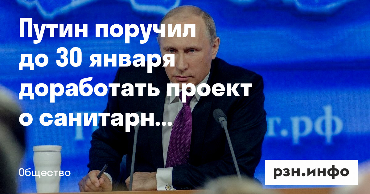 Президент Владимир Путин поручил кабмину и парламентариям до 30 января доработать законопроект о санитарно-эпидемиологическом благополучии населения, обратив внимание на права граждан. Об этом сообщает пресс-служба Кремля.