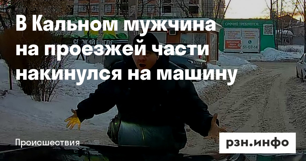 В Кальном мужчина на проезжей части накинулся на машину. Ролик инцидента опубликован в группе «» во вторник, 18 января.