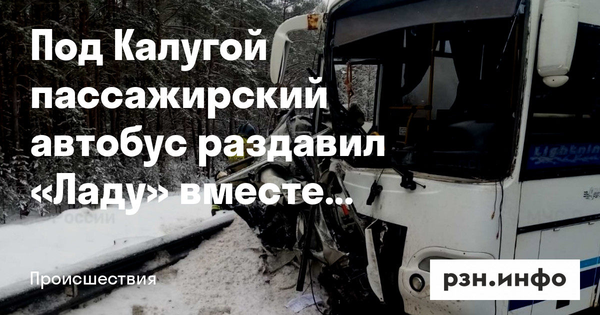 Под Калугой пассажирский автобус раздавил «Ладу» вместе с водителем
