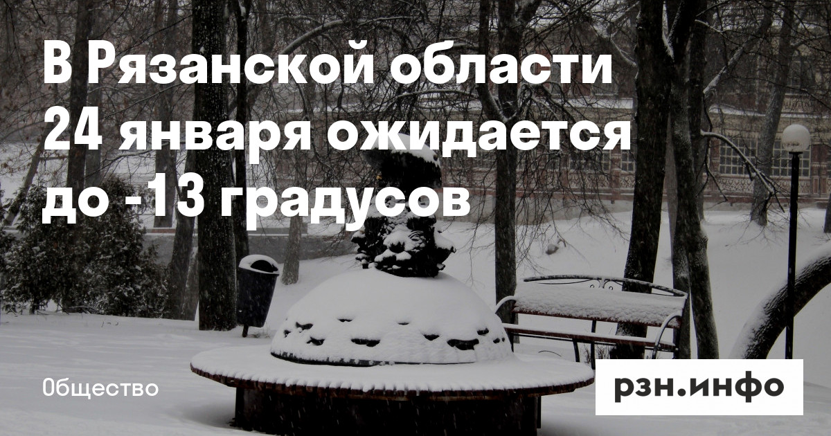 В Рязанской области в понедельник, 24 января, температура воздуха по области ночью составит −13…−8 градусов, днем −9…−4 градусов. Прогноз опубликован на сайте регионального ГУ МЧС.
