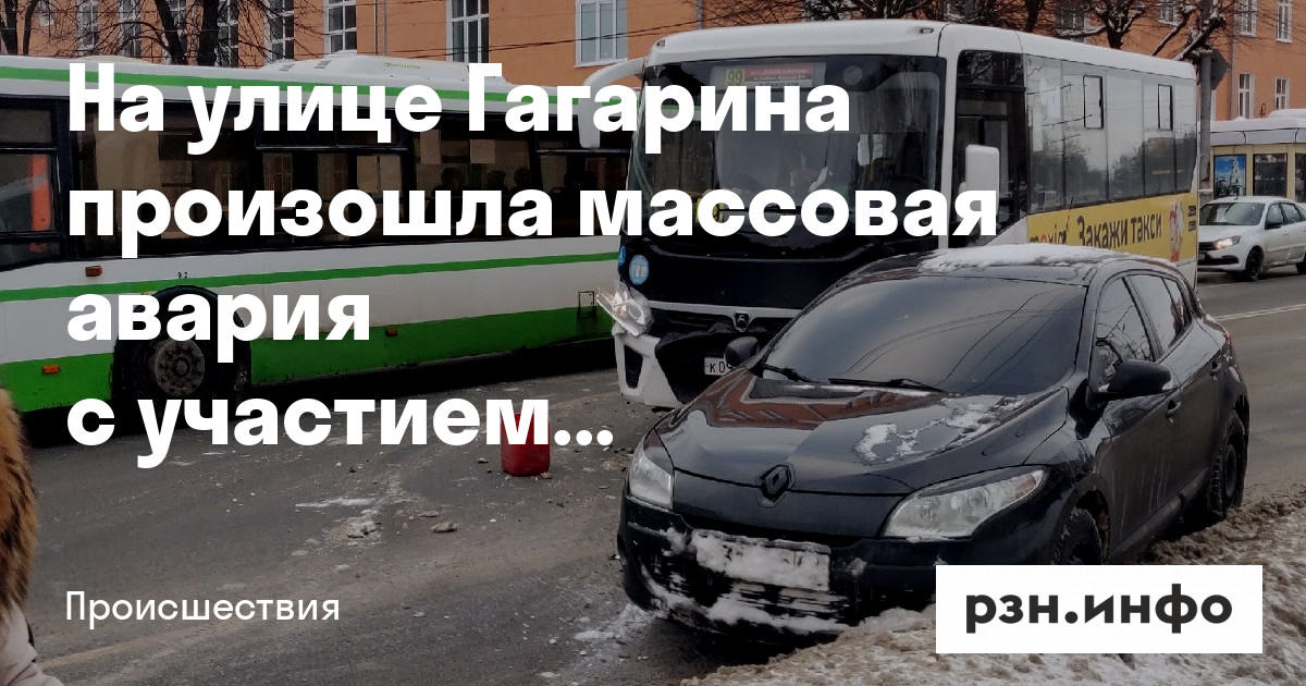 На улице Гагарина произошло массовая авария с участием маршрутки. Об этом РЗН. инфо сообщили очевидцы.