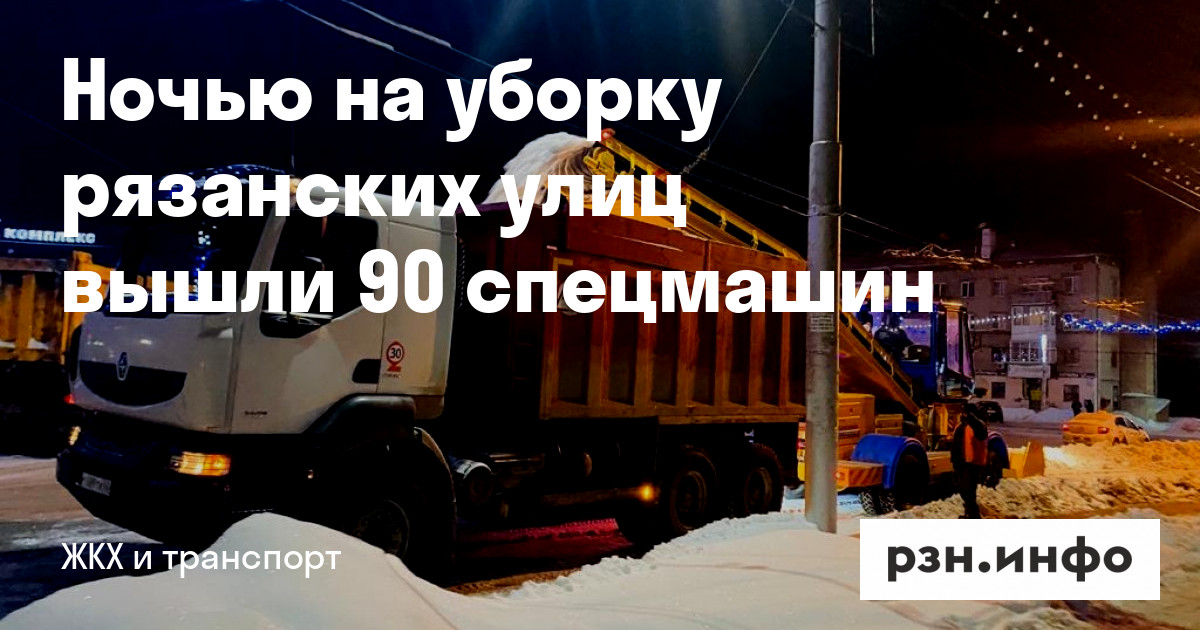 Ночью на уборку рязанских улиц вышли 90 спецмашин. Об этом на сайте мэрии.