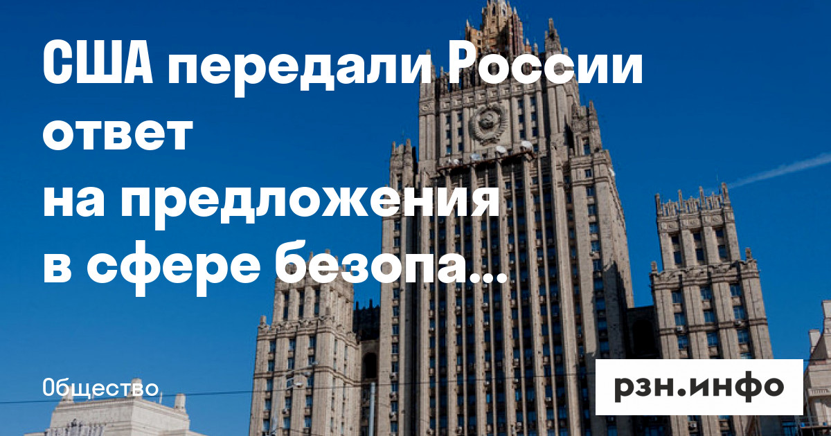 США передали России ответ на предложения в сфере безопасности. Об этом в среду, 26 января, сообщило агентство Bloomberg.