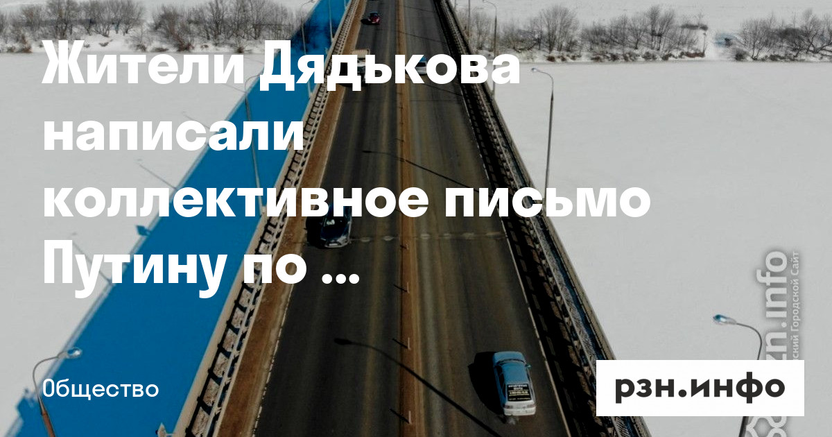 Жители Дядькова написали коллективное письмо президенту Владимиру Путину по поводу строительства моста-дублера через Оку. В своем обращении они рассказали проблемах, которые могут возникнуть при реализации проекта. Об этом РЗН. инфо сообщила читательница.