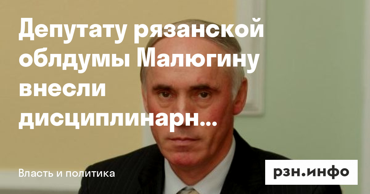 Депутату рязанской облдумы Малюгину внесли дисциплинарное наказание. Об этом на заседании сообщил председатель социального комитета Сергей Пупков, пишут «Рязанские новости».
