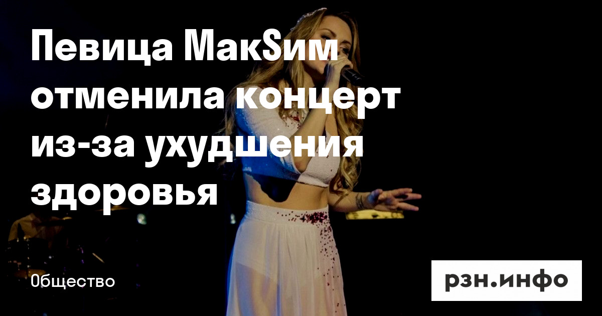 Певица МакSим отменила концерт из-за ухудшения здоровья. Об этом артистка написала в соцсетях.