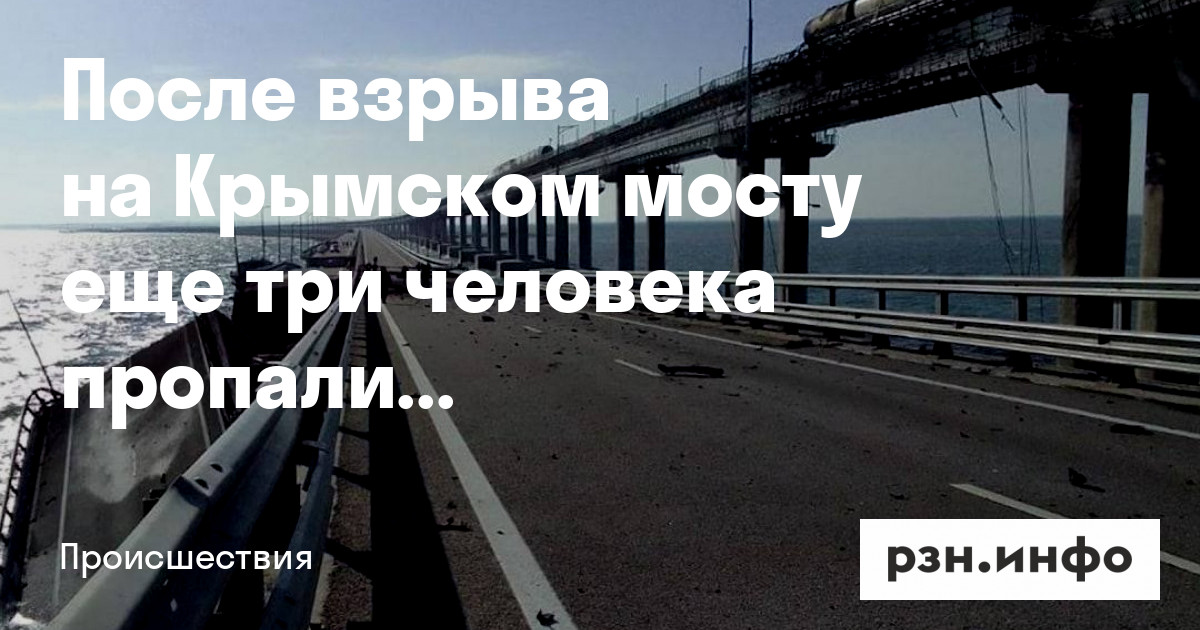 По предварительным данным, трое человек числятся пропавшими без вести и трое погибли после взрыва на Крымском мосту. Об этом сообщает Telegram-канал 112.