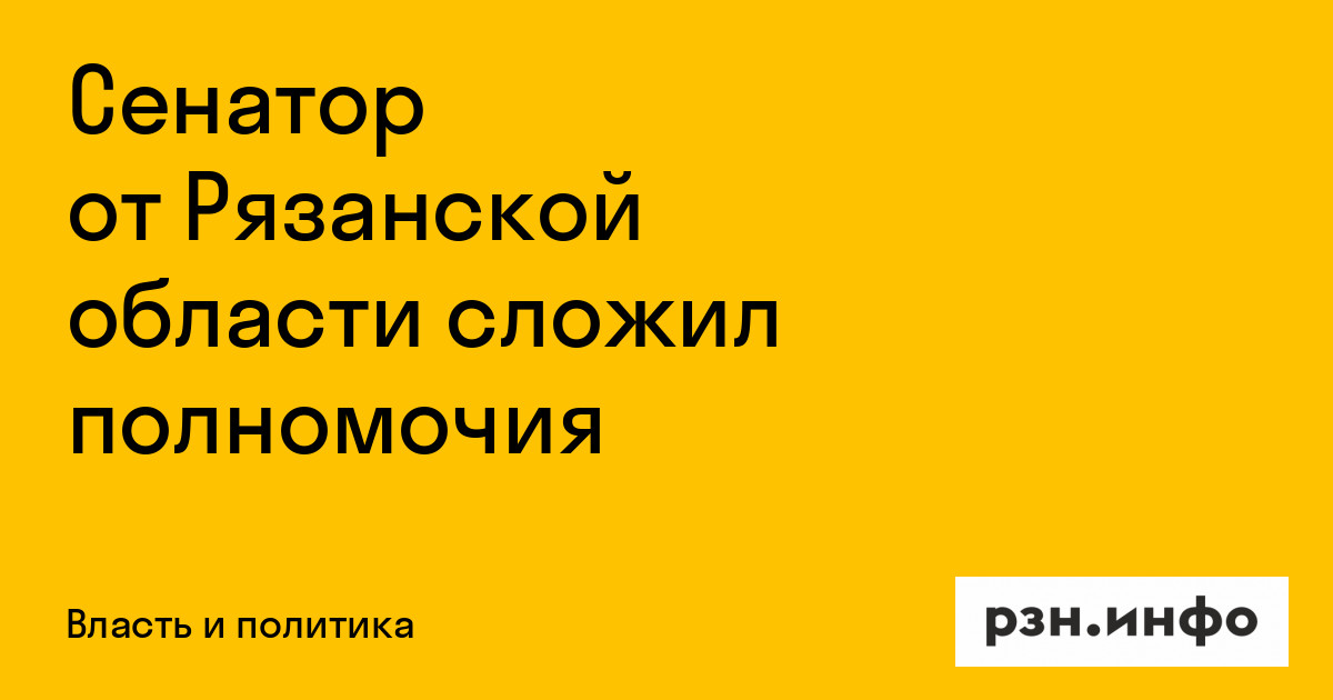 Член Совета Федерации от Рязанской области Игорь Морозов решил сложить полномочия, РБК.