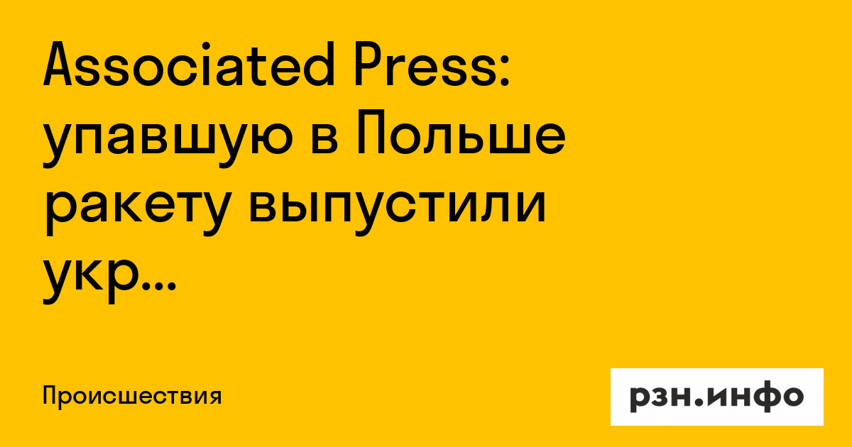 Упавшую в Польше ракету выпустили украинские войска. Об этом со ссылкой на американских чиновников передает издание Associated Press, пишет РИА Новости.