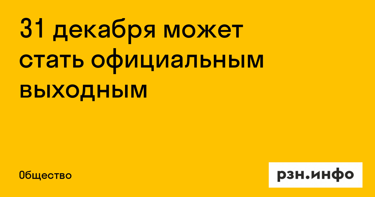 Госудма рассматривает законопроект, согласно которому 31 декабря будет признан официальным выходным уже в этом году, РИА Новости со ссылкой на сенатора Александра Башкина.