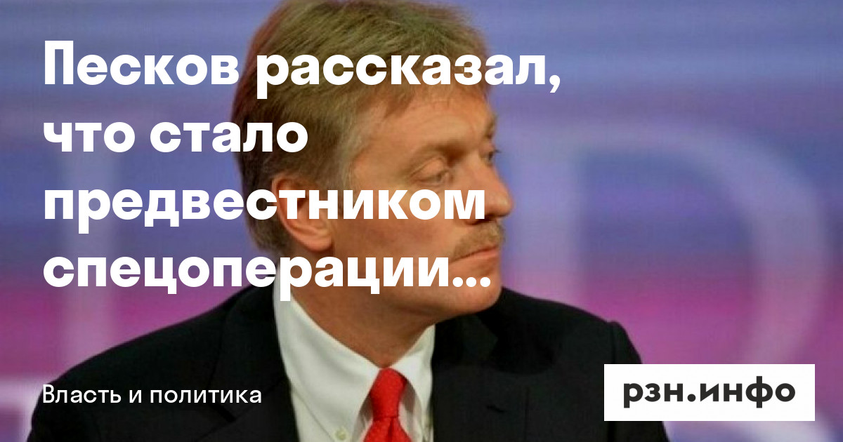 Пресс-секретарь президента России Дмитрий Песков заявил, что невыполнение Минских соглашений стало предтечей специальной военной операции. Об этом он рассказал в программе «Москва. Кремль. Путин» на телеканале «».