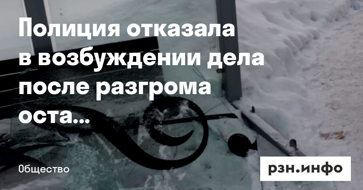 Полиция не стала возбуждать уголовное дело в отношении вандалов, разгромивших остановку «Улица Пирогова» в Рязани. Об этом сообщает «МедиаРязань».