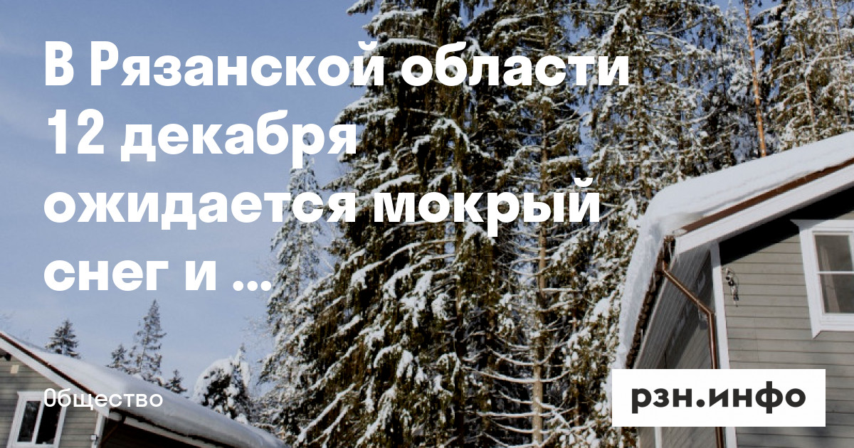 В Рязанской области в понедельник, 12 декабря, прогнозируют осадки — мокрый снег, дождь, морось. Температура воздуха ночью составит −2…+3, днем −1…+4 градуса. Прогноз погоды опубликован на регионального ГУ МЧС.