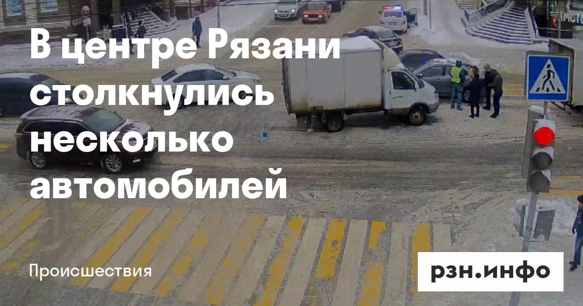Днем в среду, 14 декабря, в Рязани на перекрестке улиц Ленина и Введенской столкнулись несколько автомобилей. Фото с места ДТП РЗН. инфо прислал очевидец.