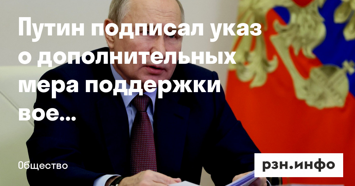 Путин подписал указ о дополнительных мерах поддержки военнослужащих. Об этом пишет .