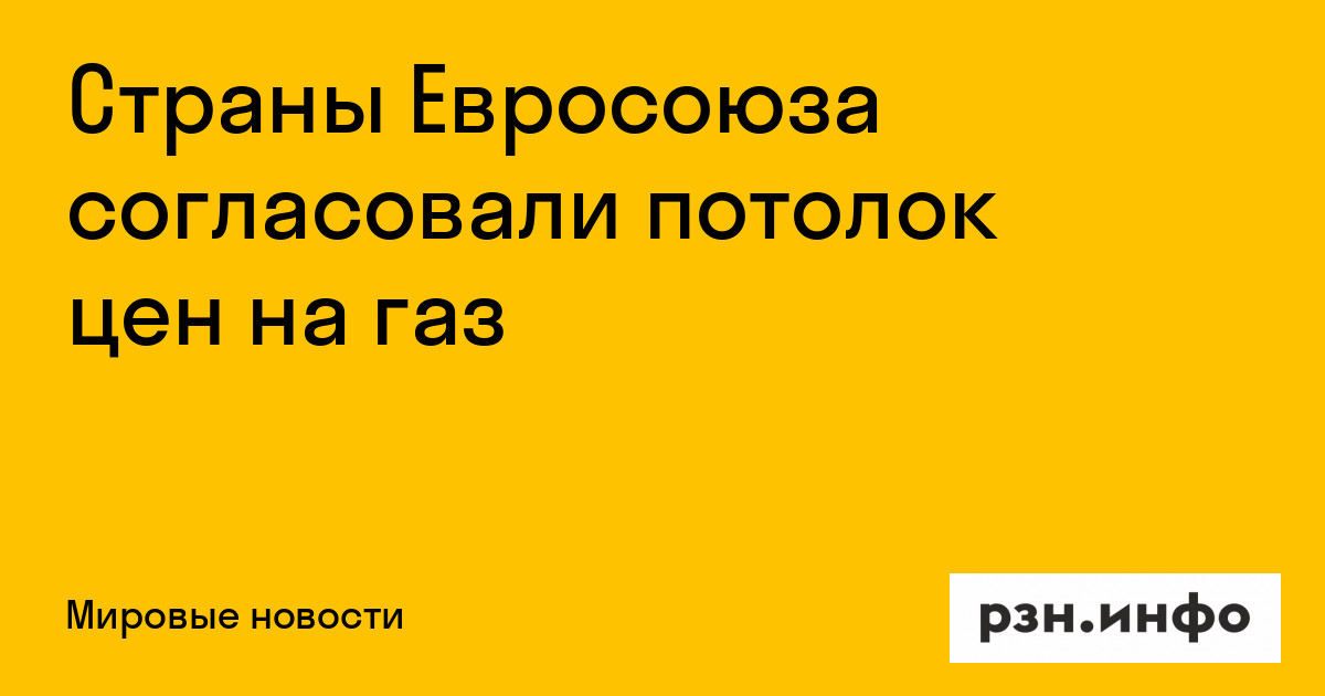 Страны Евросоюза согласовали потолок цен на газ. Об этом пишет ТАСС.