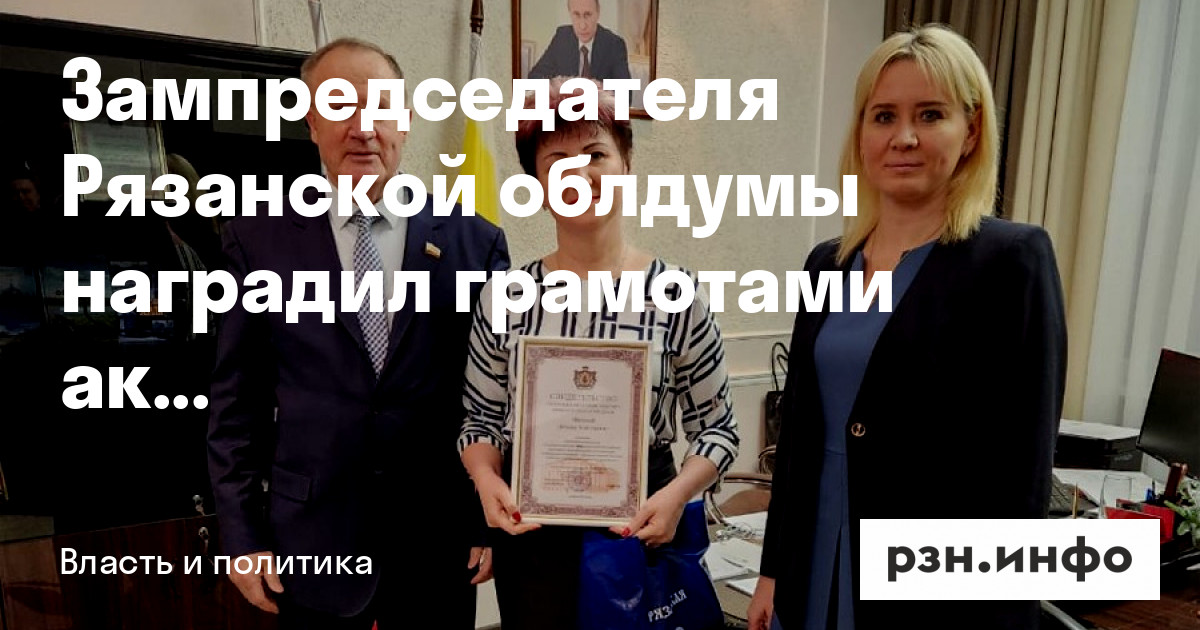 Зампредседателя Рязанской облдумы наградил грамотами активистов Рыбновского района