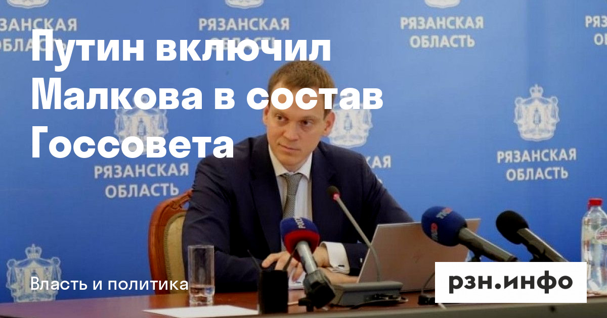 Путин включил губернатора Рязанской области Павла Малкова в состав Госсовета. Соответствующий документ опубликовали в понедельник, 5 декабря, пишет ТАСС.