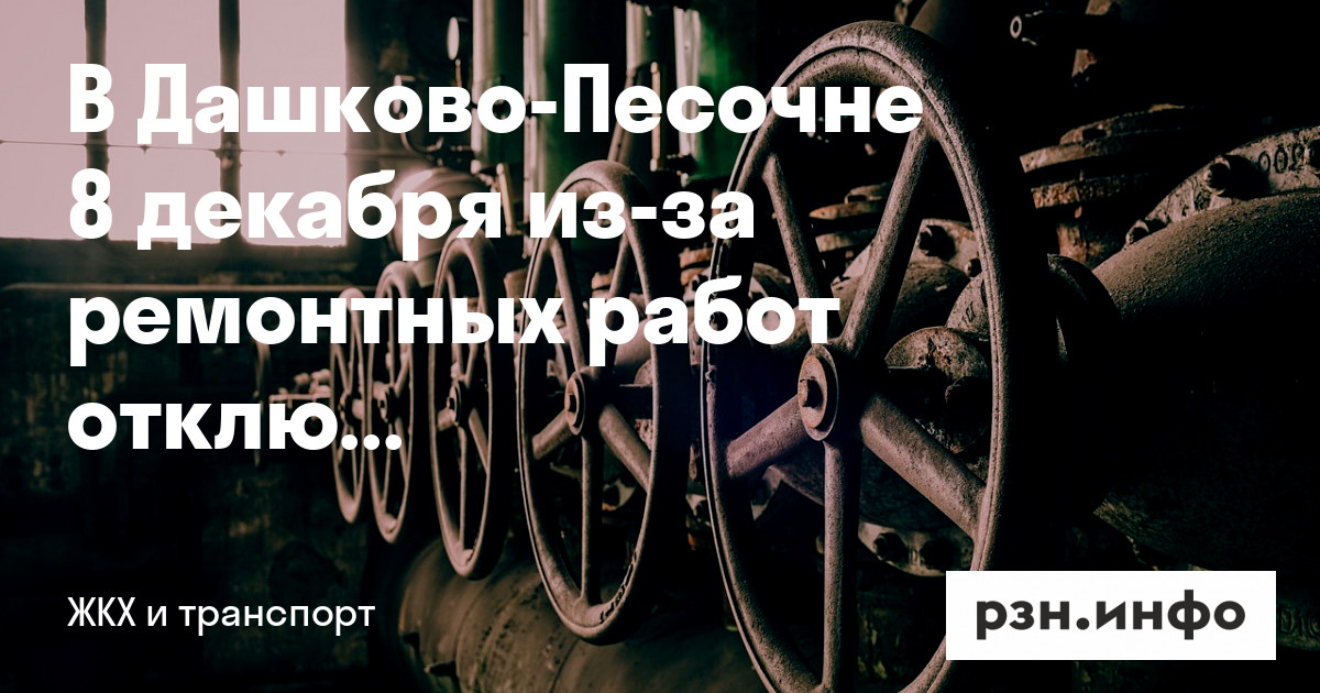 В Дашково-Песочне 8 декабря из-за ремонтных работ отключат горячую воду и отопление