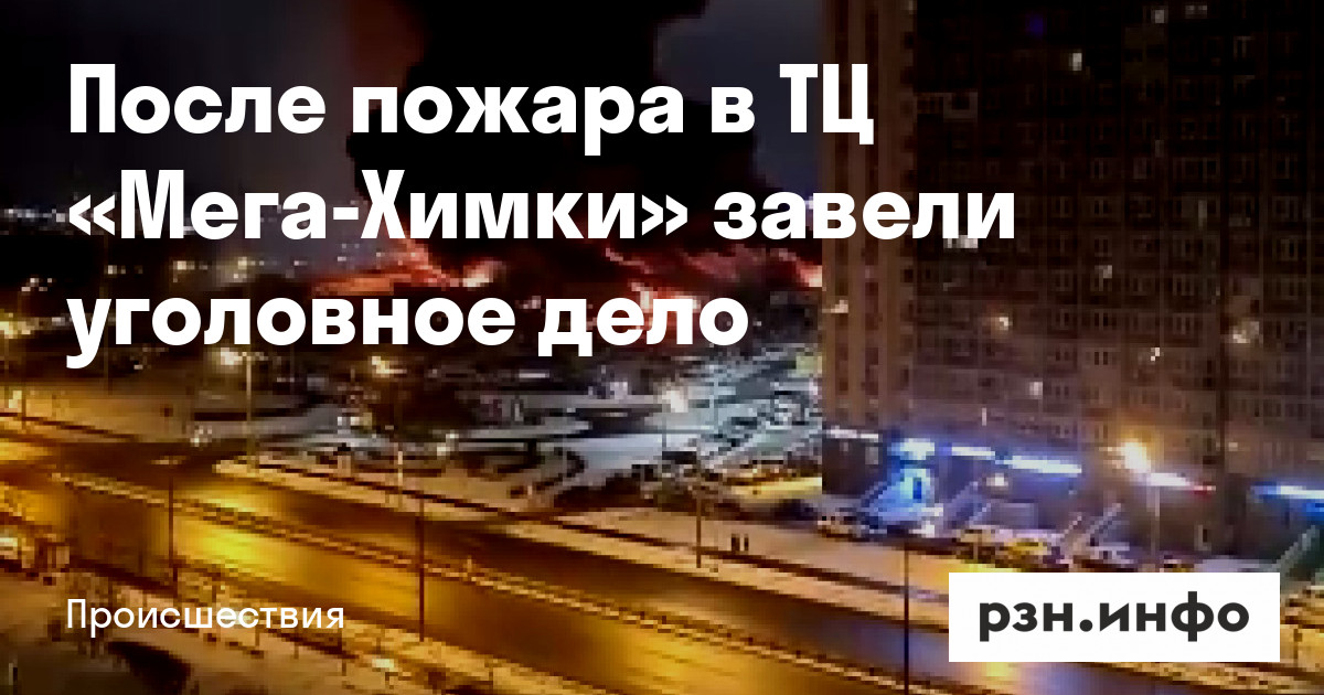 СК РФ после пожара в ТЦ «Мега Химки» завел уголовное дело о выполнении работ или оказании услуг, не отвечающих требованиям безопасности. Об этом передает РИА Новости.