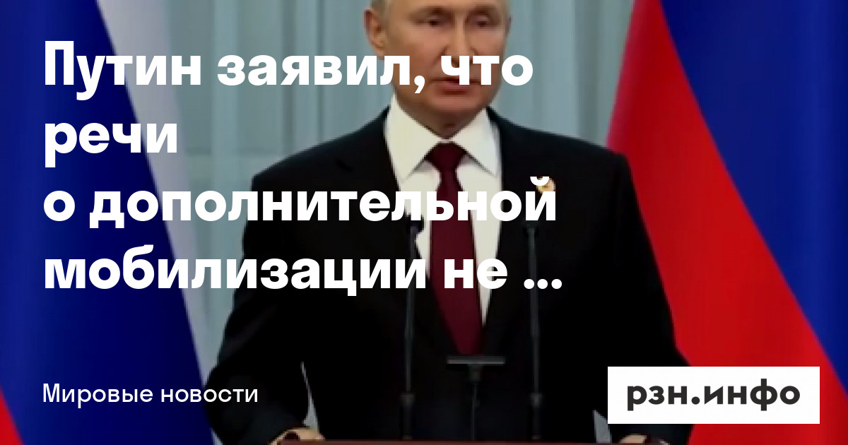 Президент Владимир Путин заявил, что речи о дополнительной мобилизации не идет. Об этом он сообщил на пресс-конференции по итогам встреч лидеров ЕАЭС.