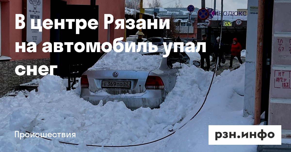 В центре Рязани около ТРЦ «Малина» на крышу автомобиля упал снег. Фото появились в соцсети.