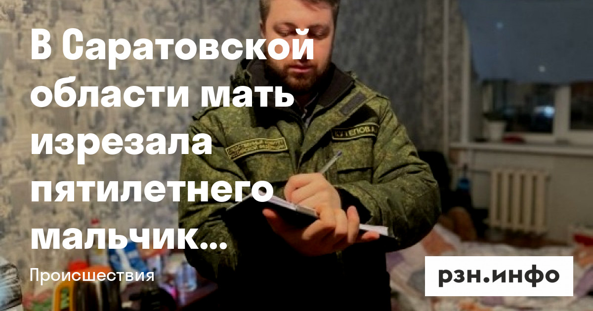 В Энгельсе Саратовской области госпитализировали пятилетнего мальчика с множественными колото-резаными ранениями на теле, в том числе в области груди, живота и шеи. По подозрению в совершении преступления задержали мать ребенка, сообщает пресс-служба регионального СУ СКР.
