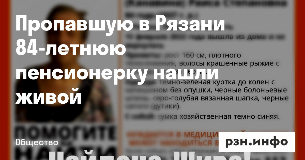 Пропавшую в Рязани 84-летнюю пенсионерку нашли живой. Об этом сообщили волонтеры «ЛизаАлерт».