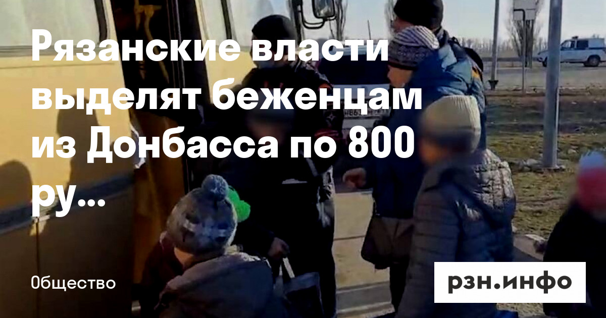 Рязанские власти выделят беженцам из Донбасса по 800 рублей в сутки. Информацию об этом в понедельник, 21 февраля, опубликовали на сайте областного правительства.