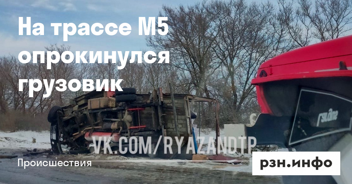 На трассе М5 в Спасском районе грузовик врезался в столб и опрокинулся. Фото опубликовано в .
