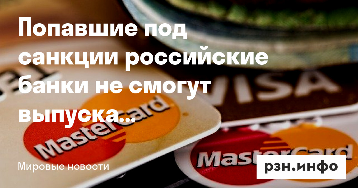 Российские банки, попавшие под санкции, не смогут выпускать новые карты Visa и Mastercard. Об этом сообщил .