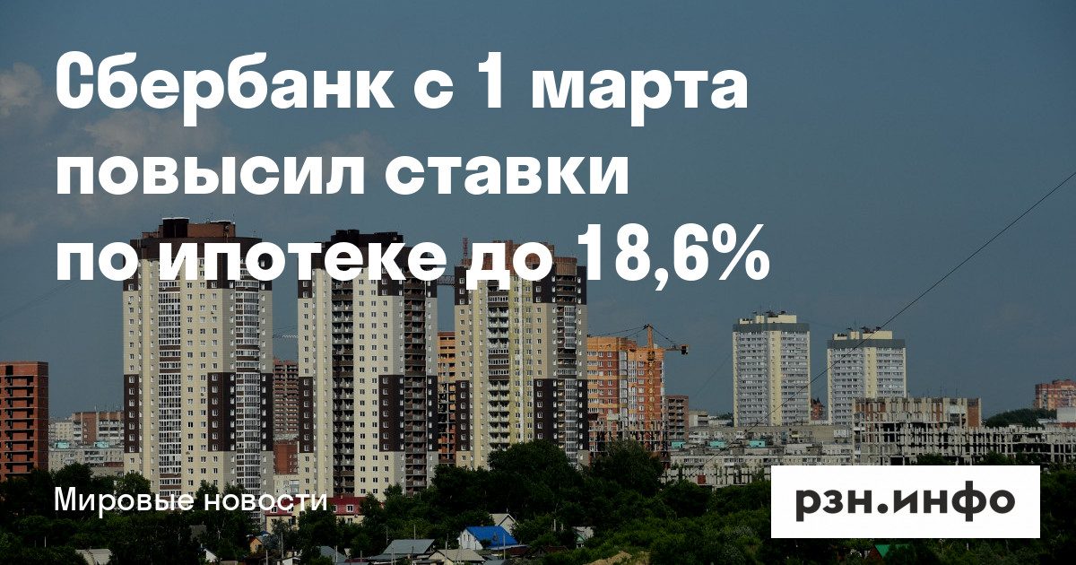 Сбербанк с 1 марта повысил ставки по ипотеке до 18,6%. Об этом во вторник, 1 марта, РИА Новости со ссылкой на пресс-службу банка.