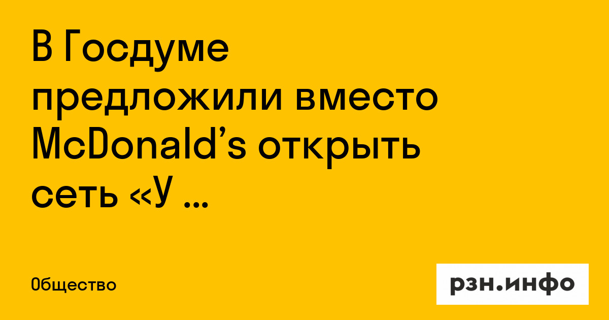 В Госдуме предложили вместо McDonald’s открыть сеть «У дяди Вани». Соответствующее предложение поступило спикера парламента Вячеслава Володина, РИА Новости.
