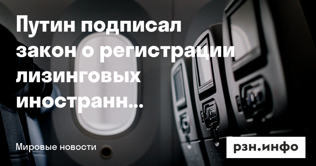 Владимир Путин подписал закон, дающий возможность регистрировать права на иностранные самолеты, находящиеся в лизинге у российских компаний. Информация опубликована на официальном портале правовой информации, пишет ТАСС.