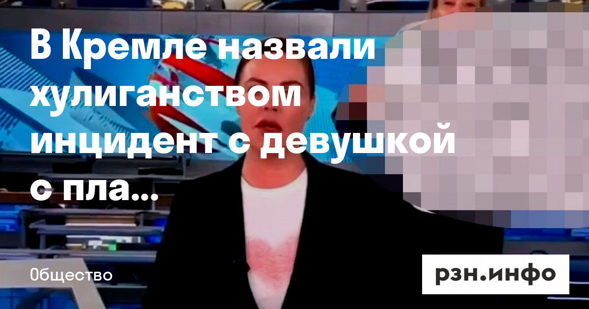 В Кремле назвали хулиганством инцидент с девушкой с плакатом в эфире Первого канала
