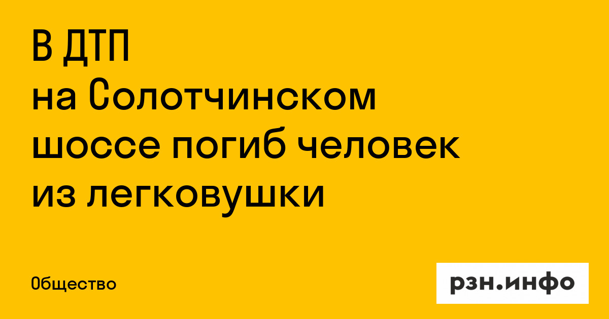 В ДТП на Солотчинском шоссе погиб человек из легковушки. Об этом РЗН. инфо сообщили в пресс-службе регионального УМВД.