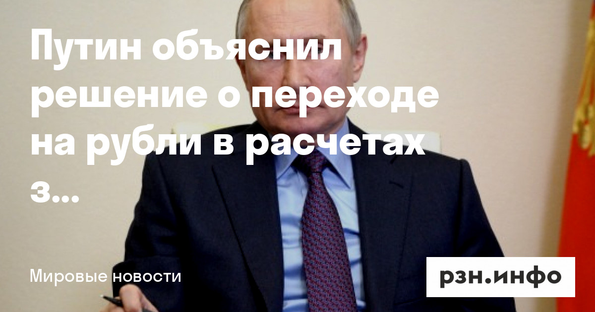 Путин объяснил решение о переходе на рубли в расчетах за газ