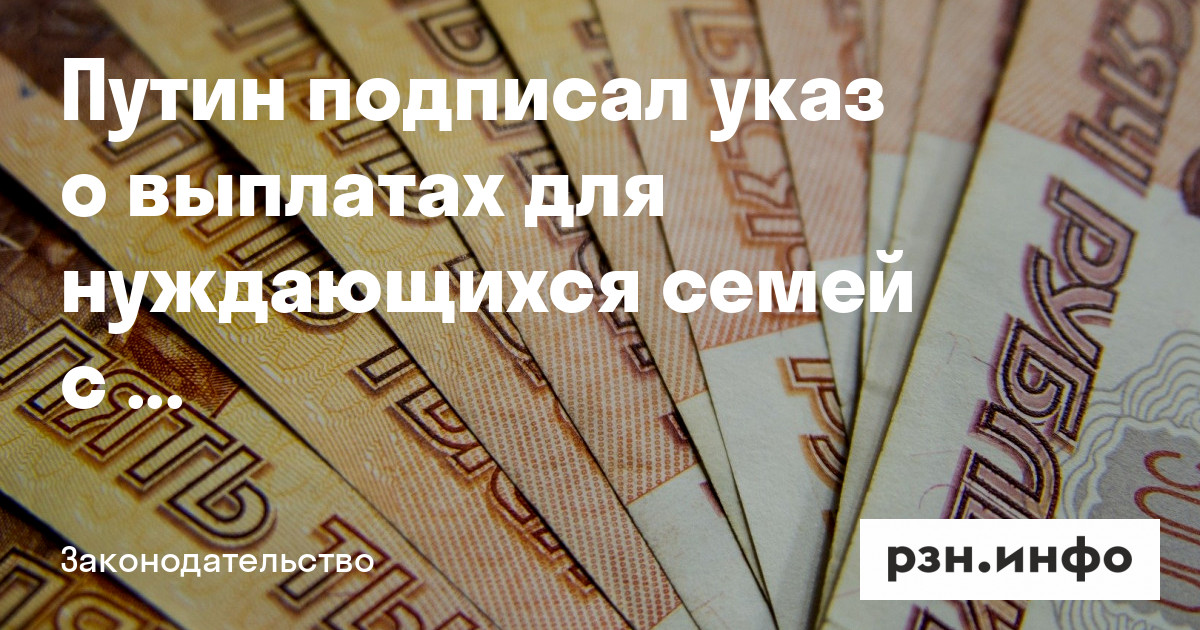 Президент России Владимир Путин подписал указ о ежемесячной выплате с 1 апреля нуждающимся семьям с детьми от восьми до 17 лет. Соответствующий документ официальном на портале правовой информации.